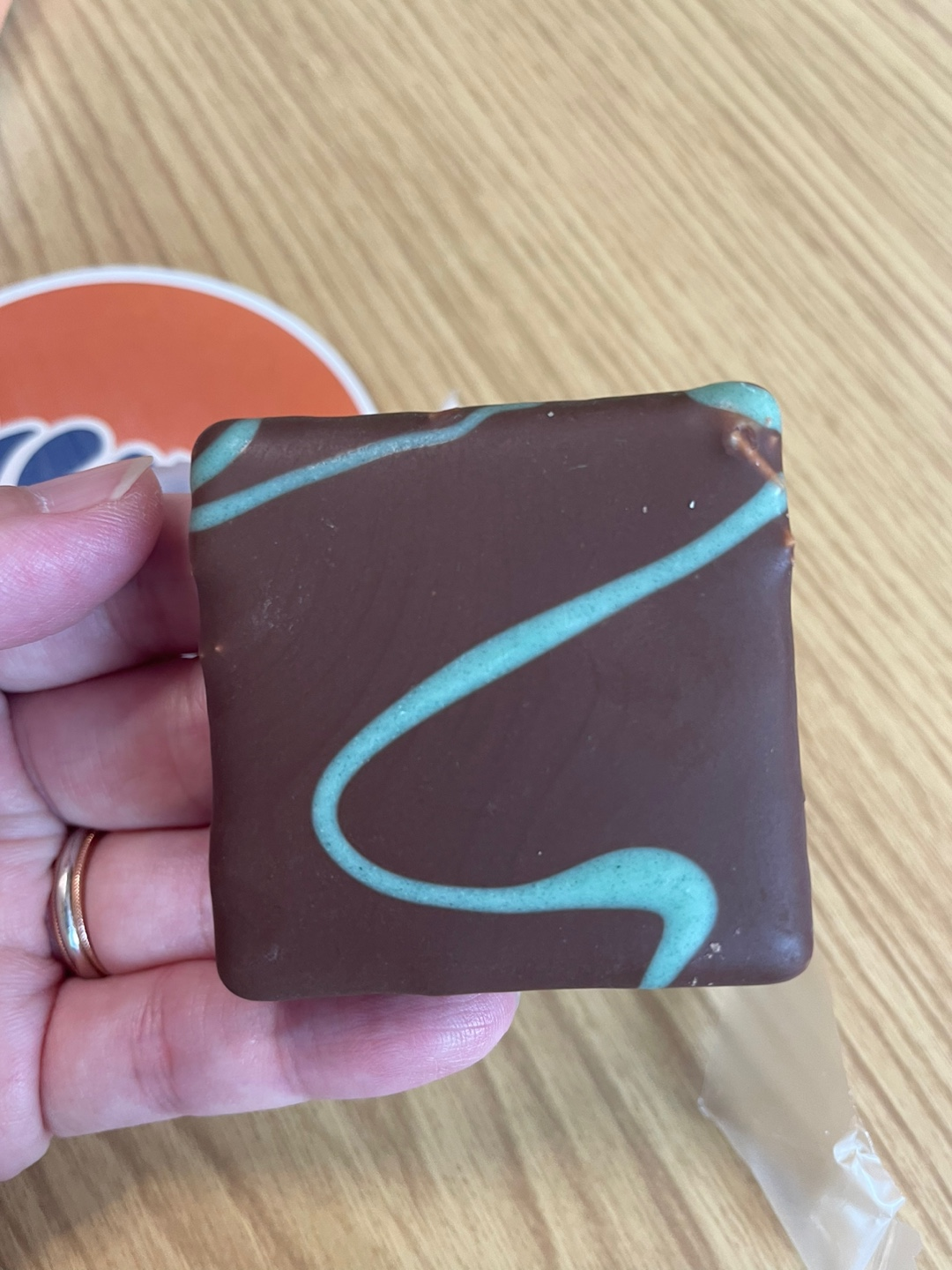 초콜릿 겉면에 민트색의 마블 무늬가 영롱하네요.