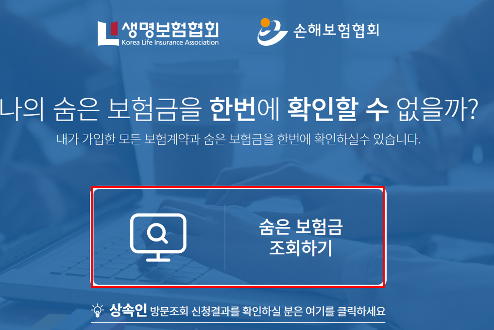 나의 숨은 보험금을 한번에 확인할 수 없을까? 내가 가입한 모든 보험계약과 숨은 보험금을 한번에 확인하실수 있습니다. 숨은 보험금조회하기 상속인 방문조회 신청결과를 확인하실 분은 여기