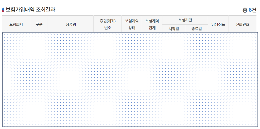 6. 조회 결과 화면 상단-보험가입내역 조회 결과