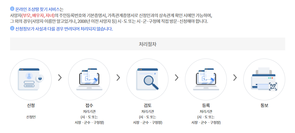 가족관계증명서로 사망인과 신청인의 가족관계 확인이 가능한 경우에만 신청할 수 있습니다.